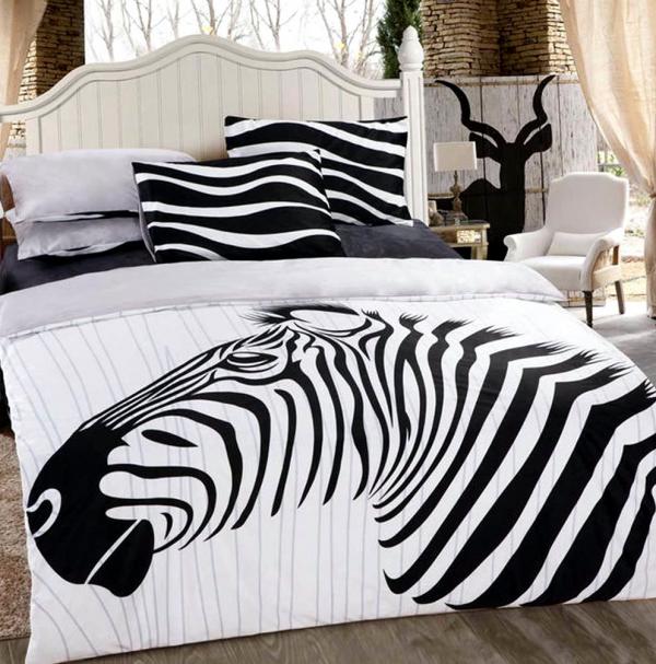 6. Phòng ngủ cá tính hơn với bộ chăn ga gối họa tiết chú ngựa vằn cực kỳ hút mắt và sống động, cùng chất liệu vải lanh mềm mại, dễ chịu.