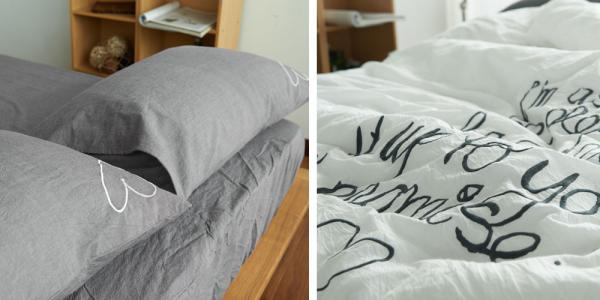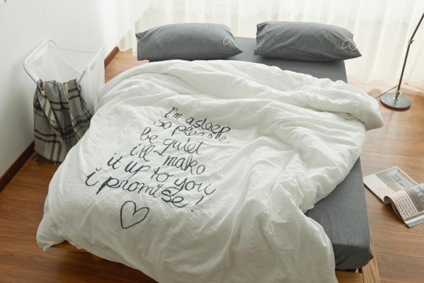 8. Đôi khi vẻ đẹp đến từ sự đơn giản, như mẫu chăn ga gối xám trắng thanh lịch với dòng chữ ngọt ngào cùng trái tim nhỏ xinh trên vỏ gối này chẳng hạn.