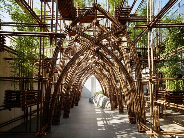 Vật liệu của công trình hoàn toàn là tre, thân thiện với môi trường và mang bản sắc Việt Nam. Kết cấu vững chắc, đảm bảo trụ vững trong điều kiện giông bão của Việt Nam và động đất của Nhật.